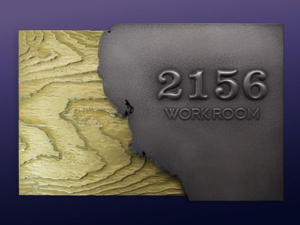 樹脂や木材など精密加工が可能で軽量な非金属の素材をあたかも金属製のように仕上げる液体金属塗料を使うことにより、よりスピーディに現場施工性にも優れた美しいサインの製作が可能です。